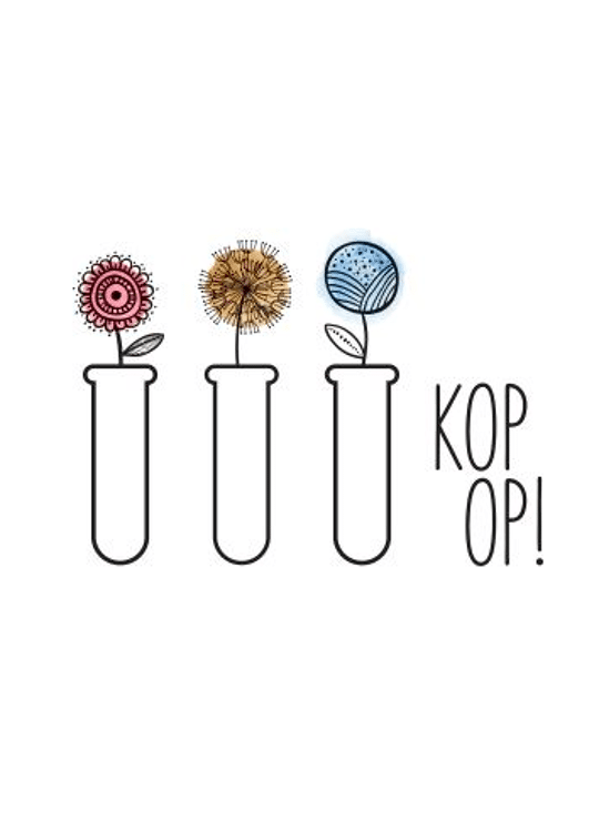Tijdens het herstel kreeg zij een heel lief kadootje. Bloemzaadjes die voor de operatie gezaaid moesten worden. De boodschap was: zaai nu deze zaadjes - ga een pittige periode door, maar als de zaadjes mooie bloemen zijn worden, dan realiseer je je waar je staat en wat je achter je kan laten. Toen de bloemen daadwerkelijk in bloei stonden ontstond er een grote glimlach en een gevoel van dankbaarheid. Dit was het perfecte kado wat je iemand kan geven! En zo ontstond het concept van Kop Op!