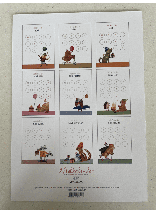 Aftelkalender 9 kaarten A5 / Adams Arts