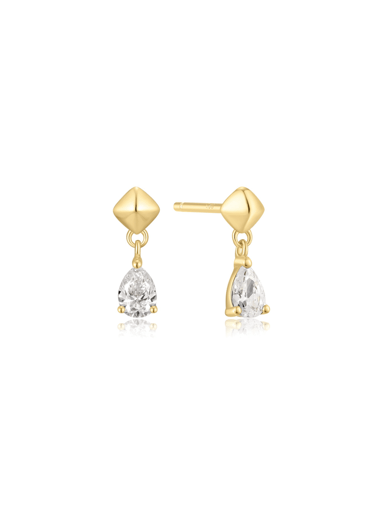 De Ania Haie Pyramid Dangle Threaded Stud Earrings vangen de perfecte balans tussen modern design en verfijnde elegantie. Deze oorstekers met subtiele hanger combineren een strak geometrisch ontwerp met een zachte glans van kubieke zirkonia’s, wat zorgt voor een opvallende, maar moeiteloze look.