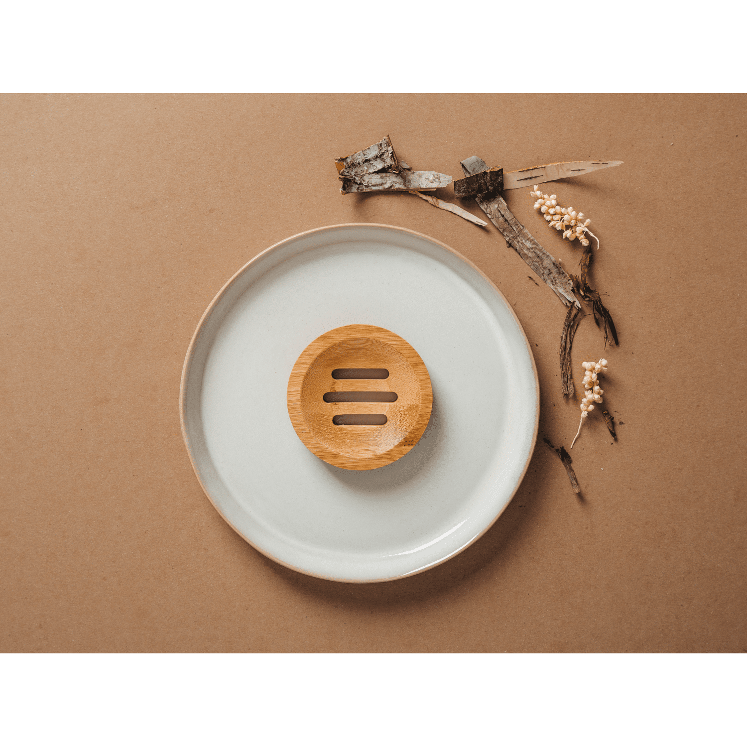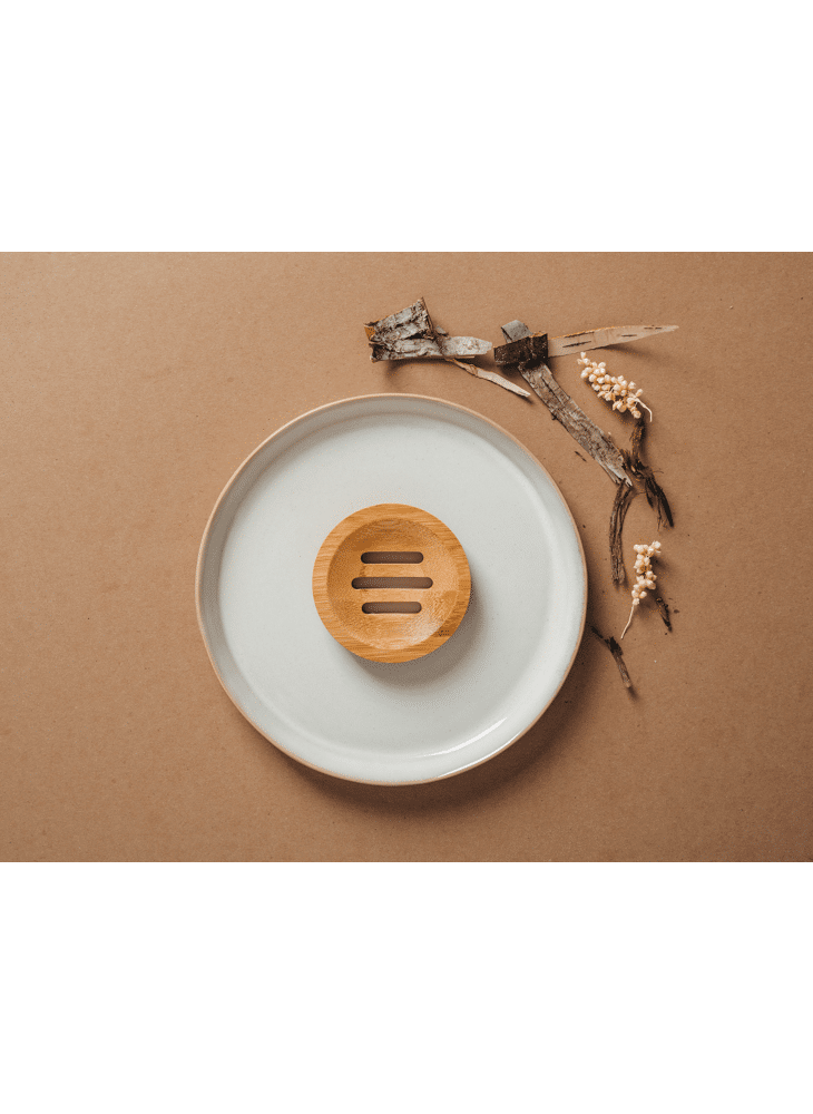 Deze 100% bamboe zeephouder heeft een ronde vorm.