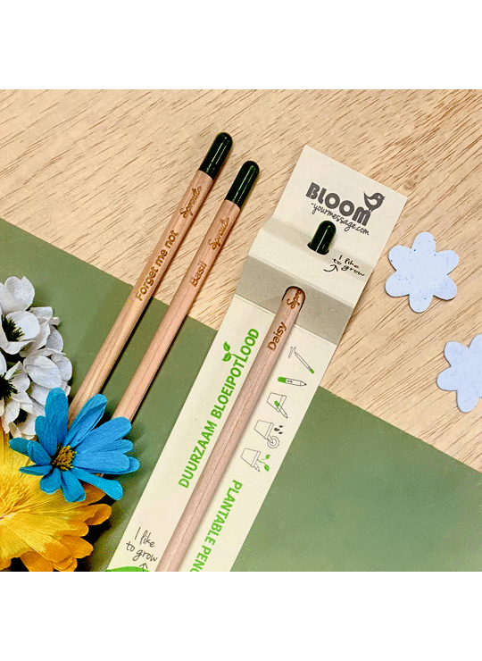 Een potlood dat groeit? Jazeker, met de potloden van Bloom Your Message hoef je nooit meer het stompje van je potlood weg te gooien. Vanaf nu zet je het in een bloempotje met aarde en je geeft het water. Verkrijgbaar met kruiden-, groente- of bloemenzaden.