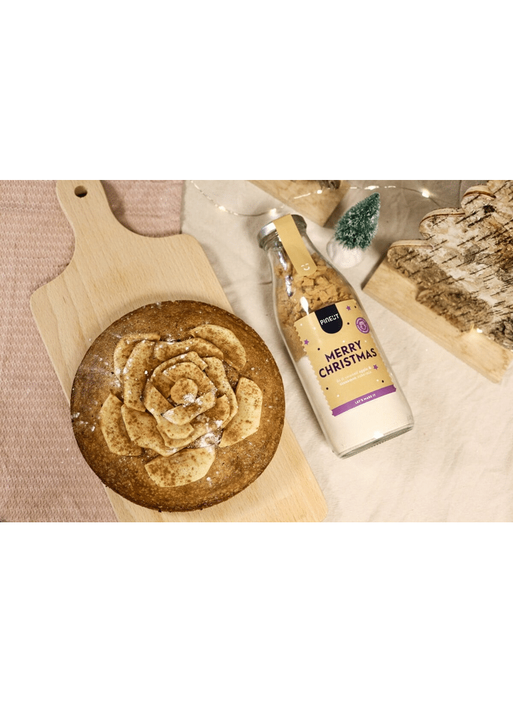 Maak de feestdagen écht speciaal met de Merry Christmas Cake van Pineut! Deze heerlijke appel-kaneel cake tovert een warme glimlach op elk gezicht en vult je huis met de geur van kerst. Een klassieke combi van frisse appels en hartverwarmende kaneel – als dat geen feest wordt!