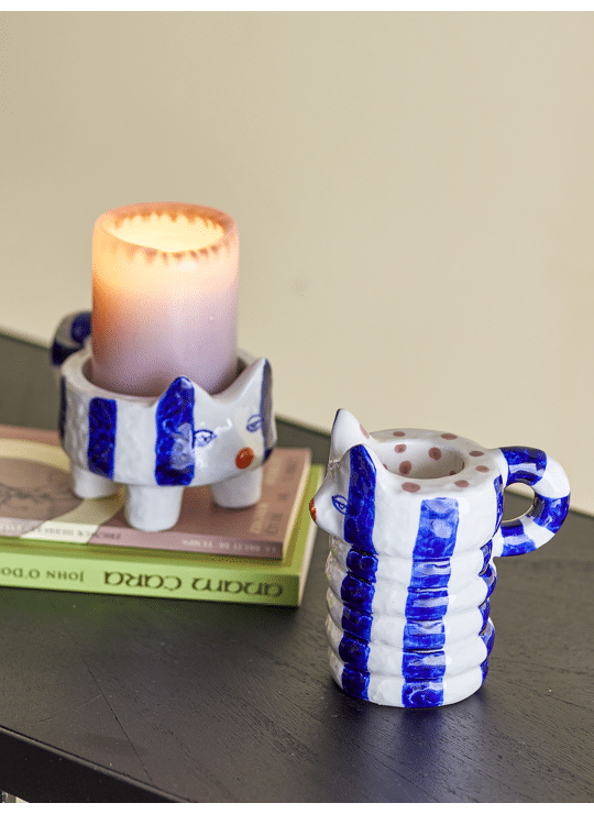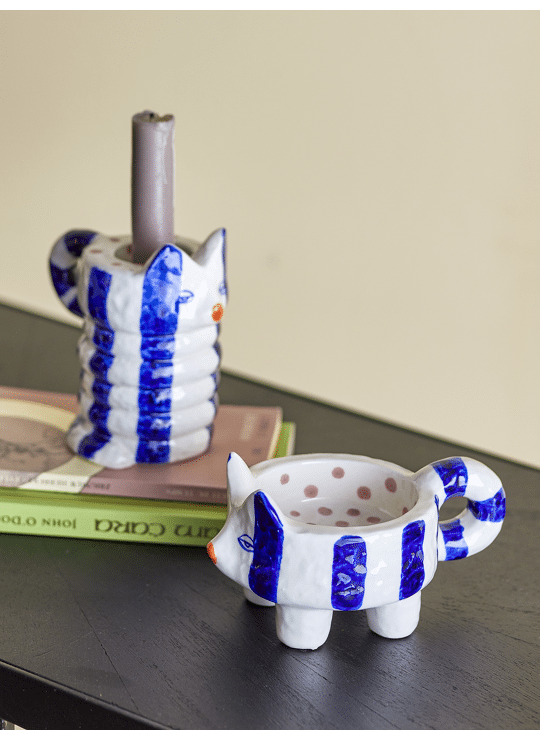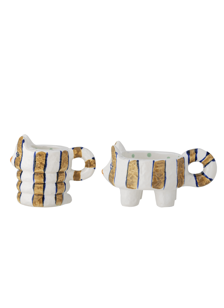 De Caty kaarsenhouder van Bloomingville is een handbeschilderde kandelaar in de vorm van een kat. Dit leuke en speelse ontwerp voegt een humoristisch element toe aan je interieur. Plaats deze kaarsenhouder op een plank of vensterbank voor een charmante en levendige touch in je huis. De handbeschilderde details zorgen ervoor dat elk stuk uniek is.
