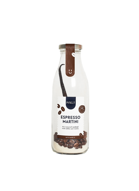 Deze Espresso Martini is dé ultieme feestcocktail! De combinatie van intense koffiebonen en fluweelzachte vanille zorgt voor een heerlijke smaaksensatie. Creëer jouw perfecte EsMa, met een beetje flair en een vleugje Pineut. Onvergetelijke momenten beginnen hier! Voeg zelf vodka toe, shake, en geniet van jouw eigen barista-waardige cocktail.