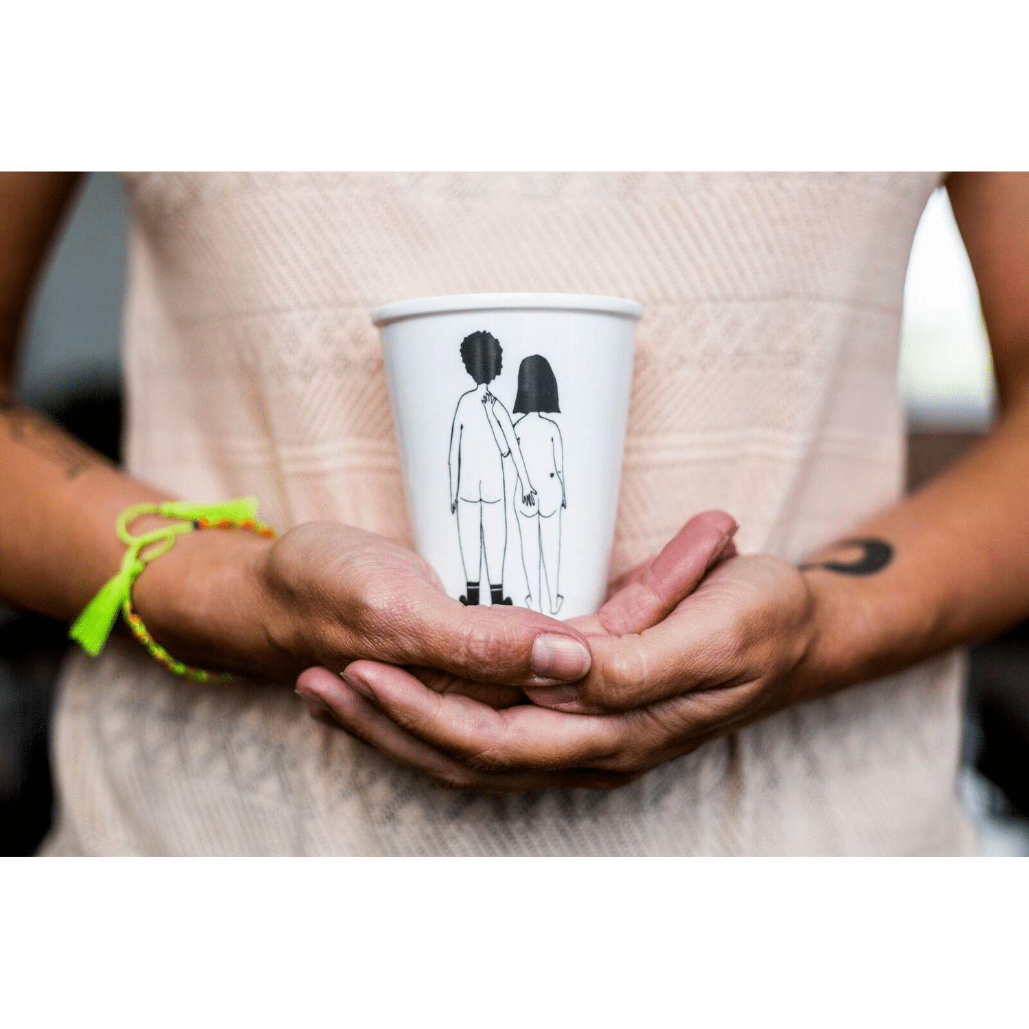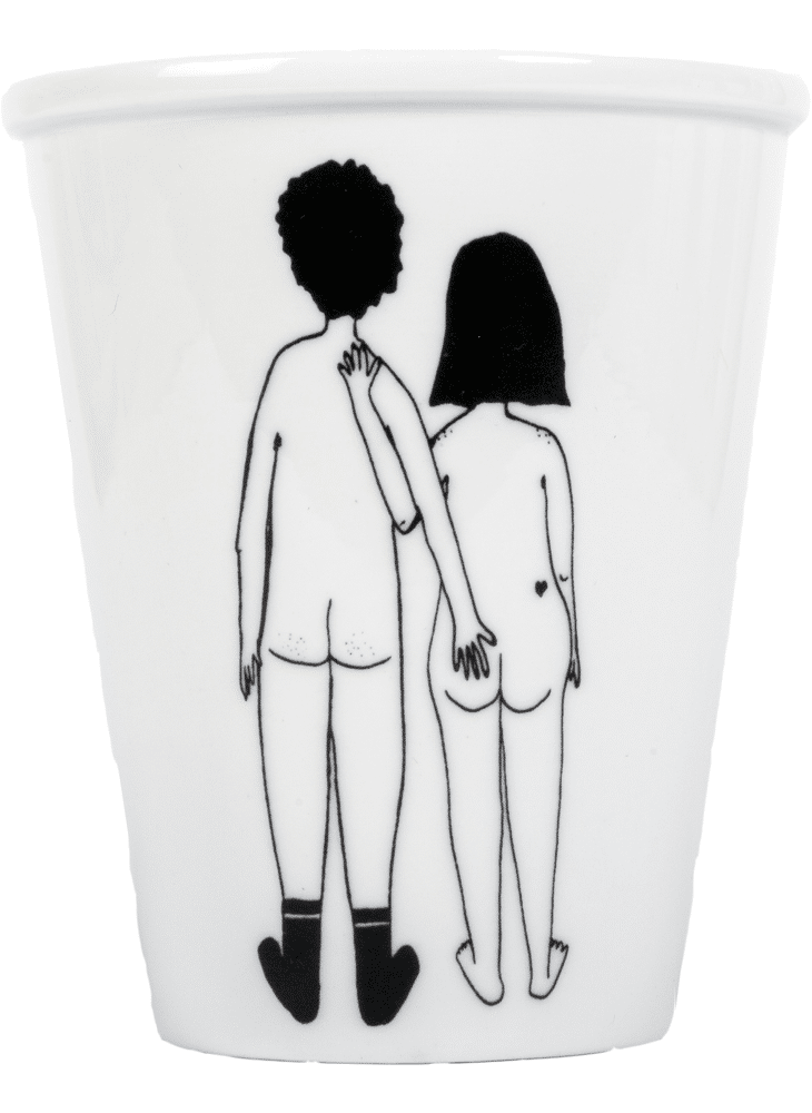 De helen b Cup ‘Naked Couple Back’ is een handgemaakte porseleinen mok met een zwarte lijntekening van een naakt koppel van achteren op een gebroken witte achtergrond. Een tikkeltje ondeugend, maar vooral warm en oprecht – precies zoals helen b het bedoelt. 😉