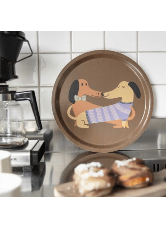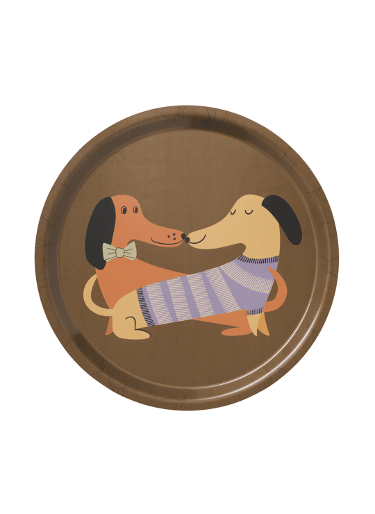 Van dit dienblad wordt je gewoon meteen vrolijk. Voor de hondenliefhebbers is dit leuke dienblad met Louie, de teckel en zijn beste vriend een must als er koffie wordt geserveerd.