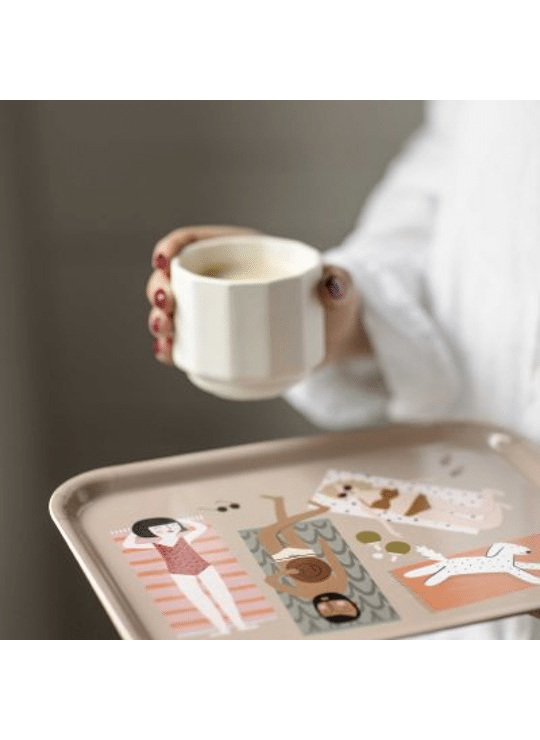 Het dienblad bestaat uit meerdere lagen berkenfineer die met de hand in elkaar worden gezet. Het fineer wordt samengevoegd en samengeperst met behulp van hitte en druk.