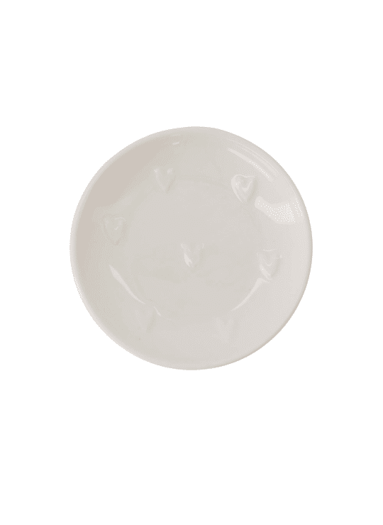Het schaaltje is gemaakt van hoogwaardig keramiek en heeft een gladde witte afwerking met fijne hartjesmotieven rondom. Dankzij het compacte formaat past het mooi bij ander servies en zorgt het voor een gezellig accent op tafel.