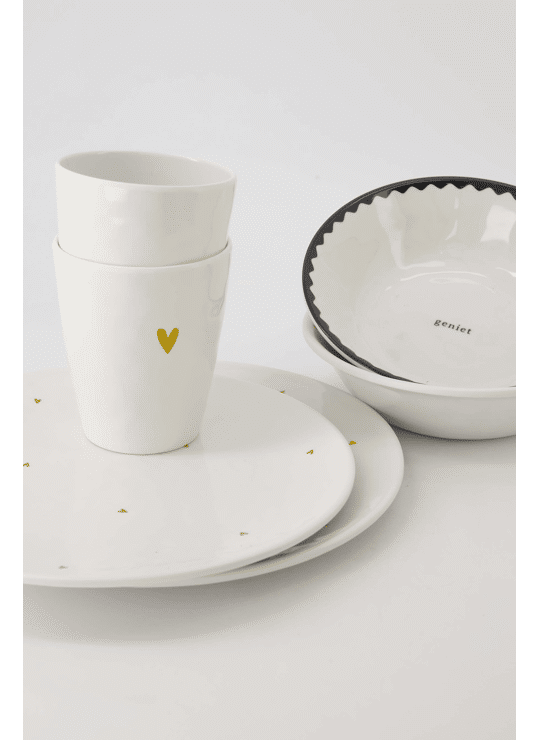 - Product: Drinkbeker melamine goud hartje wit/zwart / Zusss
