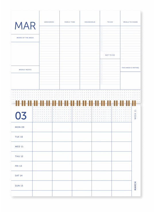 Een strak design, overzichtelijk weekoverzicht, heel veel lijstjes en leuke stickers! Omdat ze je helpen georganiseerd te blijven en grip te houden op je leven zonder iets te vergeten. Zo is er ruimte voor to do’s, no to do’s, groceries, family time, weekly notes en natuurlijk: this weeks rating.