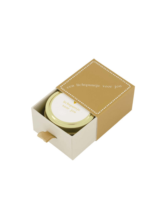 - Product: Geurkaars schuifdoosje Lichtpuntje voor jou wit/goud / Zusss