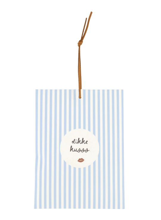 Dit geurzakje van Zusss is o-zo leuk! Deze laat jouw hele kamer lekker ruiken! Met het lintje hang je 'm gemakkelijk aan een deurklink of in je kledingkast. Dit geurzakje is blauw/wit gestreept met op de voorkant de tekst 'dikke kusss'.