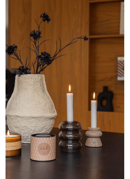 Bonus: de kandelaar is gemaakt van recycled glas, lekker duurzaam dus!