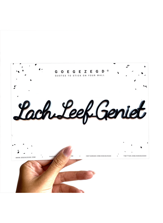 Voor de productie van de Goegezegd quotes wordt er gebruik gemaakt van hoogkwaliteitsacrylaat. Dit materiaal is UV-bestendig en verkleurt dus niet. Net zoals een sticker is de achterzijde van de quote voorzien van een zelfklevende drager.