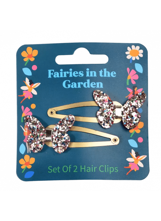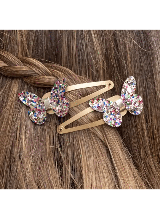 Voeg een glinstering toe aan elk kapsel met deze set gouden Fairys in the Garden glitter haarspeldjes. Deze glinsterende vlinderhaarspeldjes zijn een magisch modeaccessoire voor peuters en kleuters.