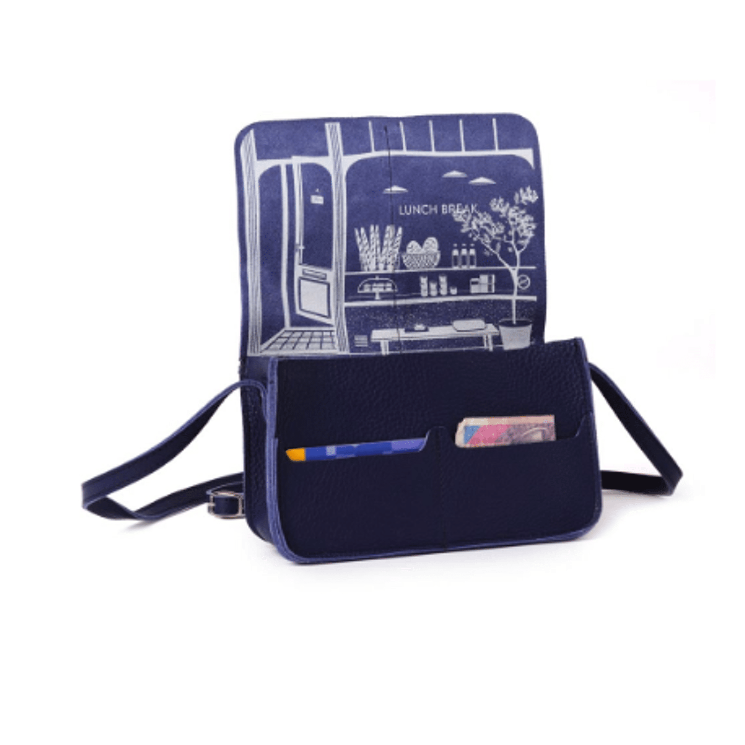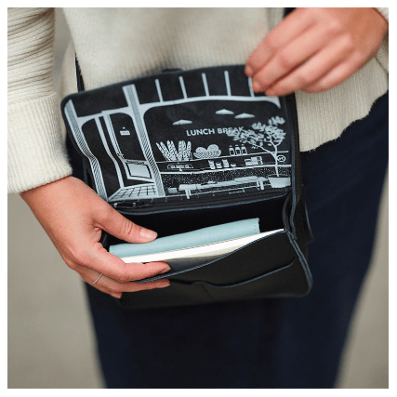 De Lunch Break is dé tas voor je favoriete moment van de dag. Een handzame tas, formaat lunchtrommel zeg maar, met aan de binnenkant een zeefdrukprint van dat leuke lunchtentje op de hoek. En compact als-ie is, biedt de Lunch Break binnenin toch verrassend veel ruimte. Kom, wie gaat er mee lunchen?