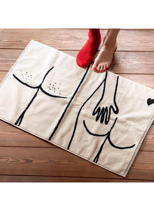 De ‘Naked Couple Back’ badmat is gemaakt van 100% katoen en toont de herkenbare, handgetekende illustratiestijl van helen b – vrolijk, eerlijk en met een knipoog. De tekening is dubbelzijdig zichtbaar, waardoor deze mat een echte blikvanger is in je badkamer of toilet.