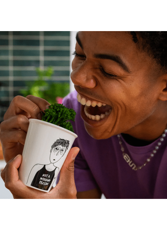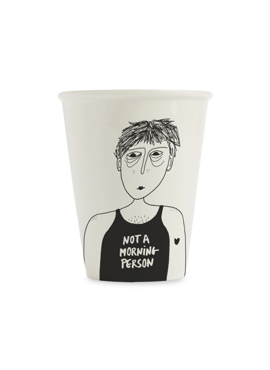 De helen b Cup ‘Not a Morning Person’ is een handgemaakte porseleinen mok met een zwarte lijntekening op een gebroken witte achtergrond. De herkenbare, humorvolle stijl van helen b vangt precies dat ochtendlijke gevoel – eerlijk, grappig en een tikkeltje koppig. 🌿