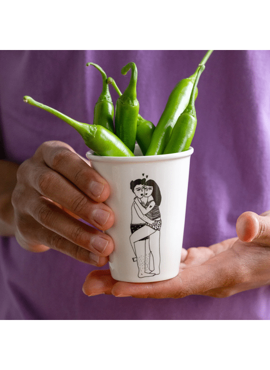 De helen b Cup ‘Morning Love’ is een handgemaakte porseleinen mok met een zwarte lijntekening op een gebroken witte achtergrond – speels, minimalistisch en 100% helen b. De zachte illustratie straalt warmte en vrolijkheid uit, perfect om je ochtend een beetje zachter te maken. 🌿
