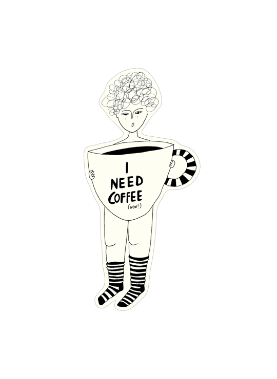 • ☕ Vinylsticker ‘Coffee Now’ – met originele helen b-illustratie