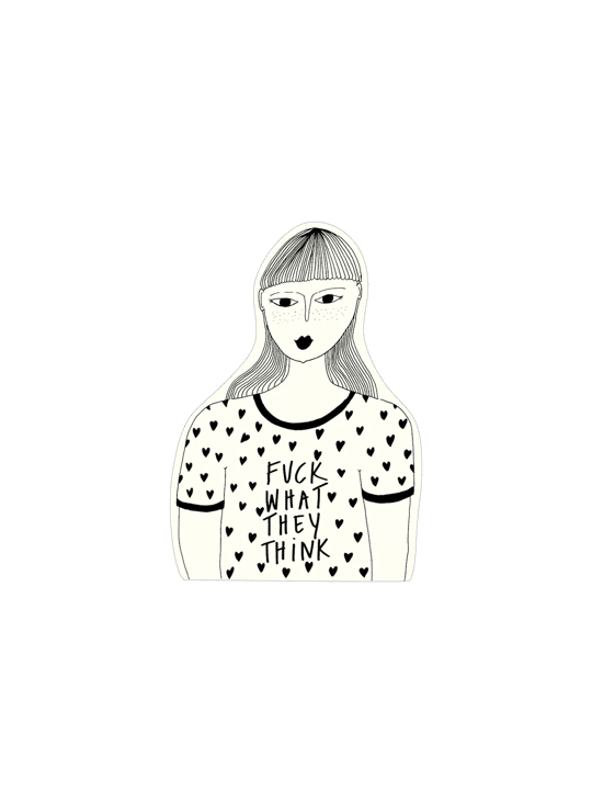 • 💬 Vinylsticker ‘Fuck What They Think’ – met originele helen b-illustratie