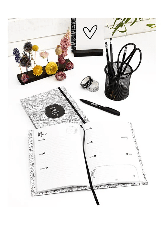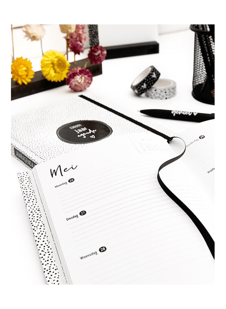 Leuke zwart wit agenda met mooie prints en toffe quotes.
