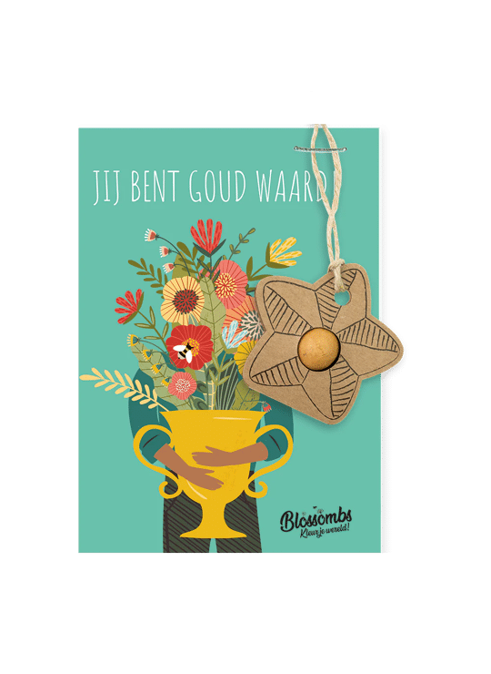 Kaart met sterhanger en zaadbommetje Jij bent goud waard / Blossombs
