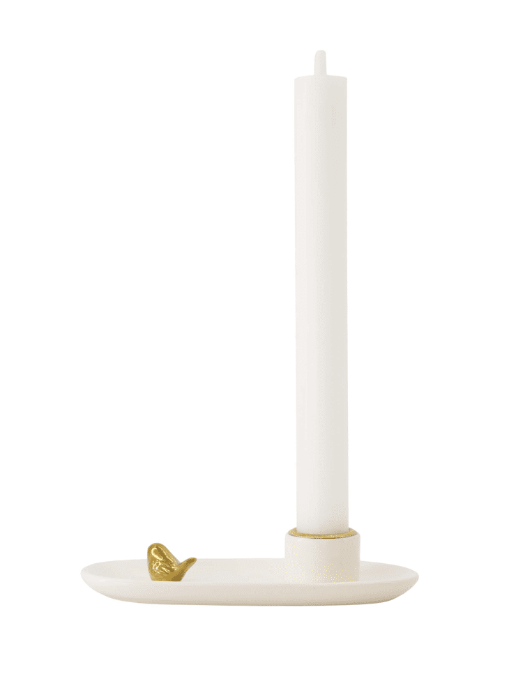 Kandelaar keramiek vogeltje wit/goud / Zusss