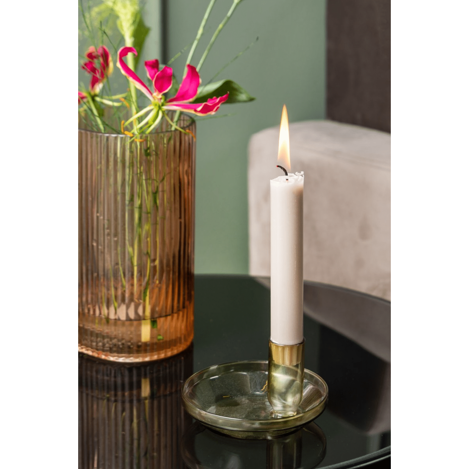 En stijlvol is het zeker. Het retro design in combinatie met het glas maakt deze kandelaar een toppertje in je interieur.