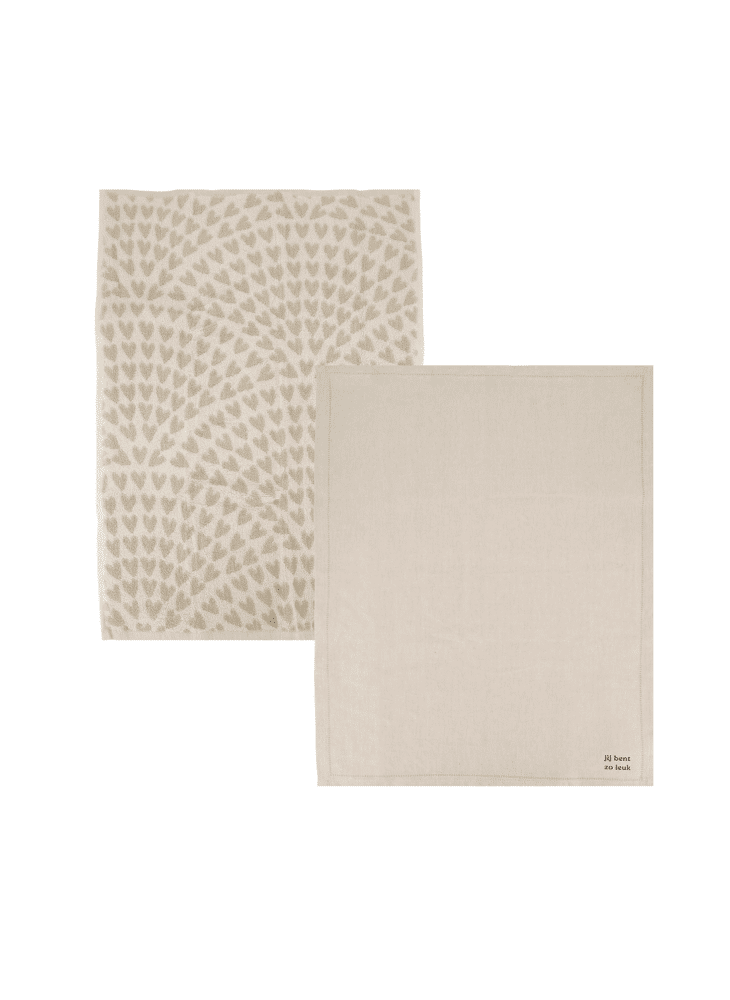 Deze Zusss set kan niet ontbreken in jouw keuken. De handdoek heeft een hartjespatroon en op de theedoek staat 'jij bent leuk'.