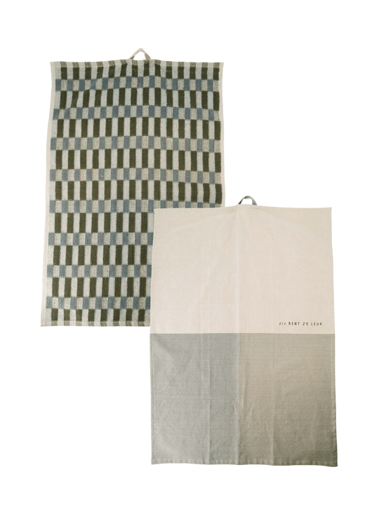 Keukenset jij bent zo leuk grafisch patroon zand/grijs/groen / Zusss