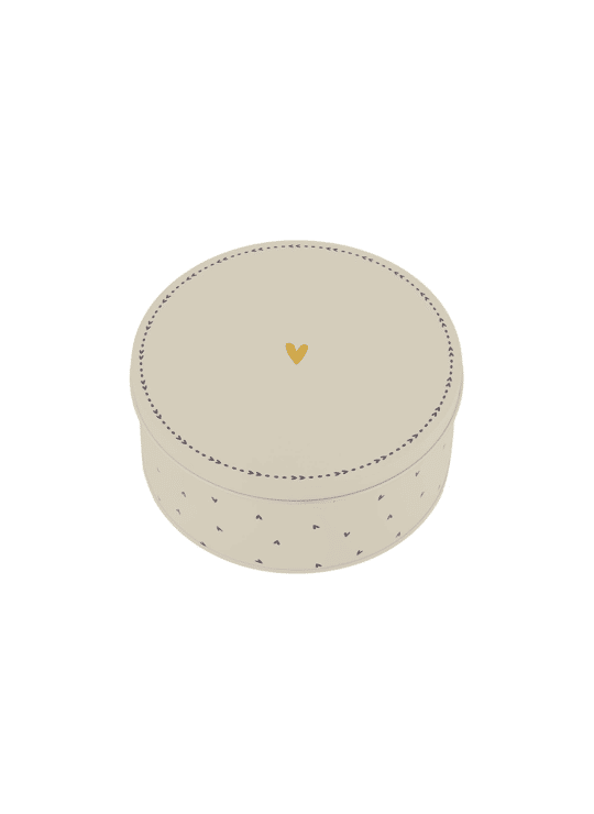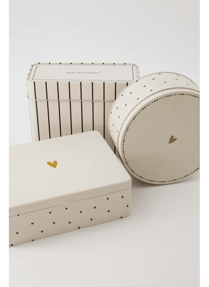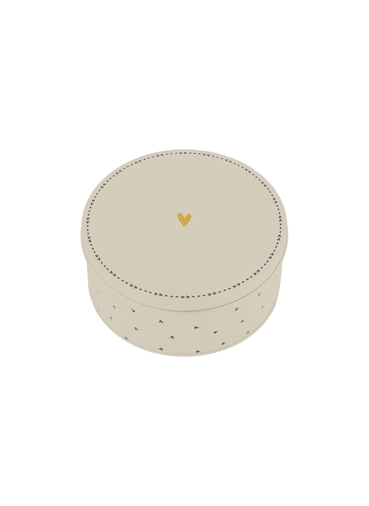 Dit leuke ronde koekblik is perfect om de heerlijkste zelfgebakken koekjes in te bewaren. Aan de zijkant staat er een hartjespatroon en op het deksel staat er een gouden hartje.