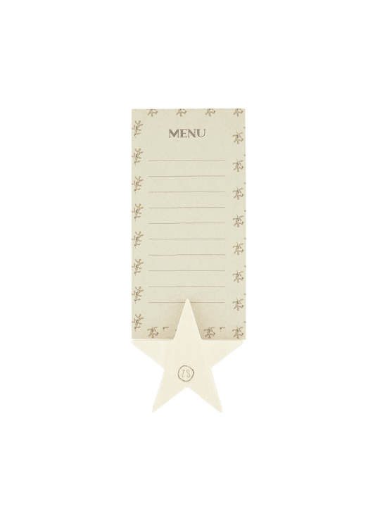 De menukaartjes zijn 15 centimeter hoog en 7,5 centimeter breed. De houten sterren standaardjes hebben een doorsnede van 7,3 centimeter. Maak jouw kersttafel compleet met deze menukaartjes van Zusss!