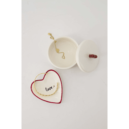 Bewaarpot keramiek hartje wit/rood / Zusss