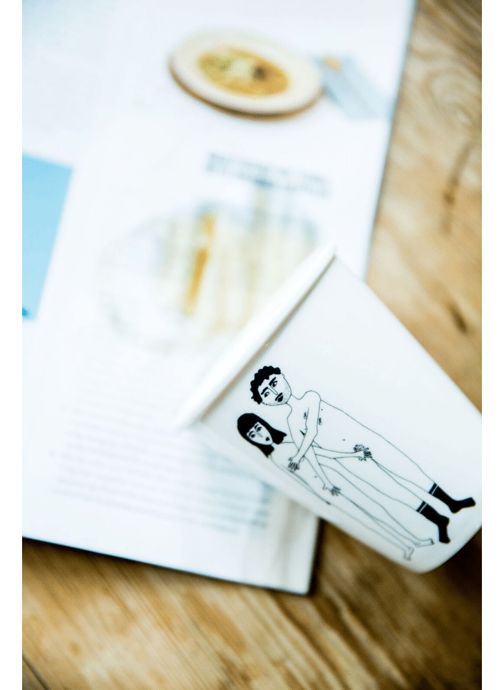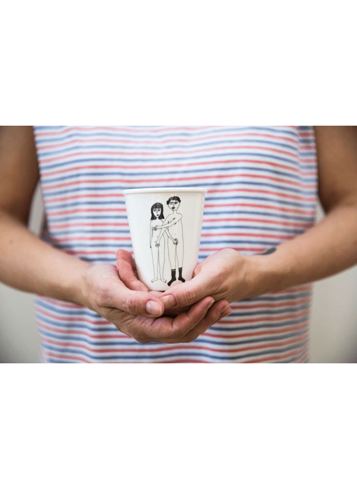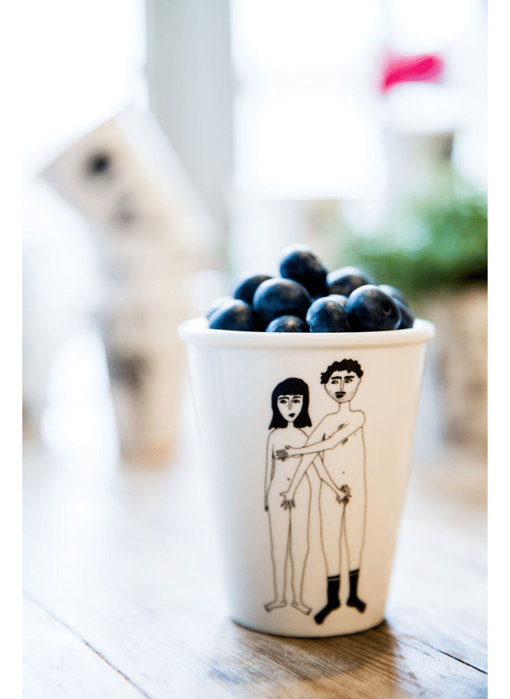 In een sociale werkplaats in Gent worden de helen b tekeningen design per design op het porselein gezet en wordt het porselein afgebakken in keramiekovens op 840°C. Dat zorgt ervoor dat al het porselein vaatwas- en ovenbestendig is!