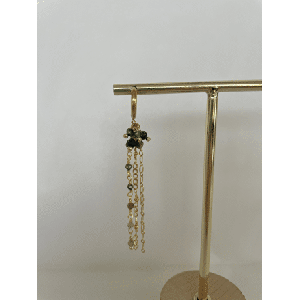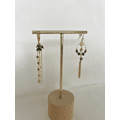 Assymetrische oorstekers met bohemian ontwerp afgewerkt met groene natuursteen.