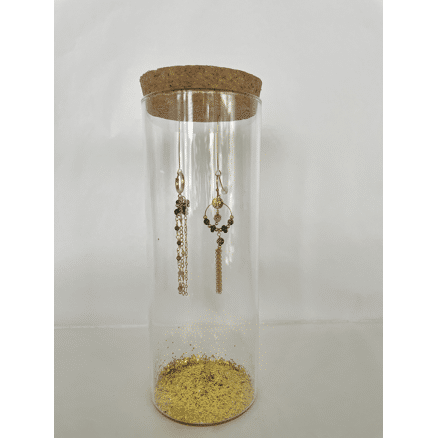 De oorhangers komen in een mooie glazen koker.