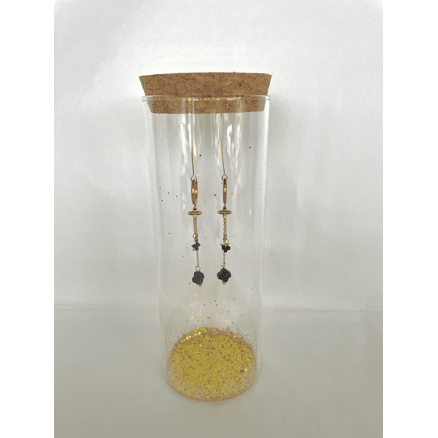 De oorhangers zitten in een mooie glazen koker.