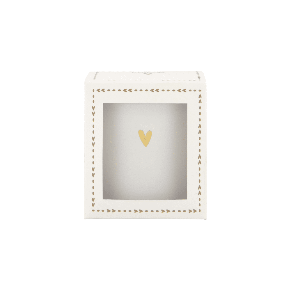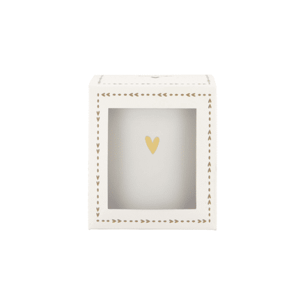Het is bijna zonde om deze Zusss geurkaars uit het doosje te halen. De buitenkant ziet er al zo leuk uit met de gouden hartjes. Van het witte kaarsje kun je ook al zo genieten! Op de voorkant staat een gouden hartje.