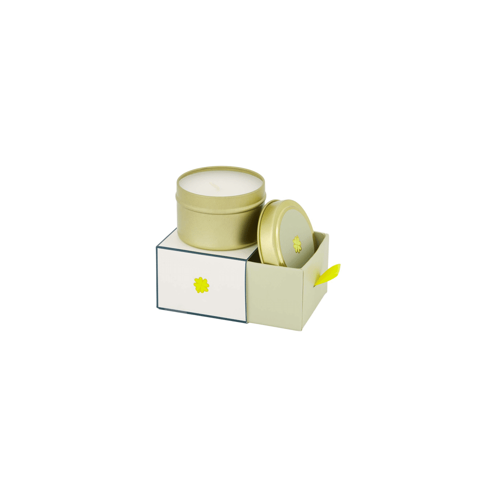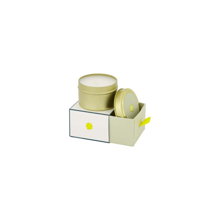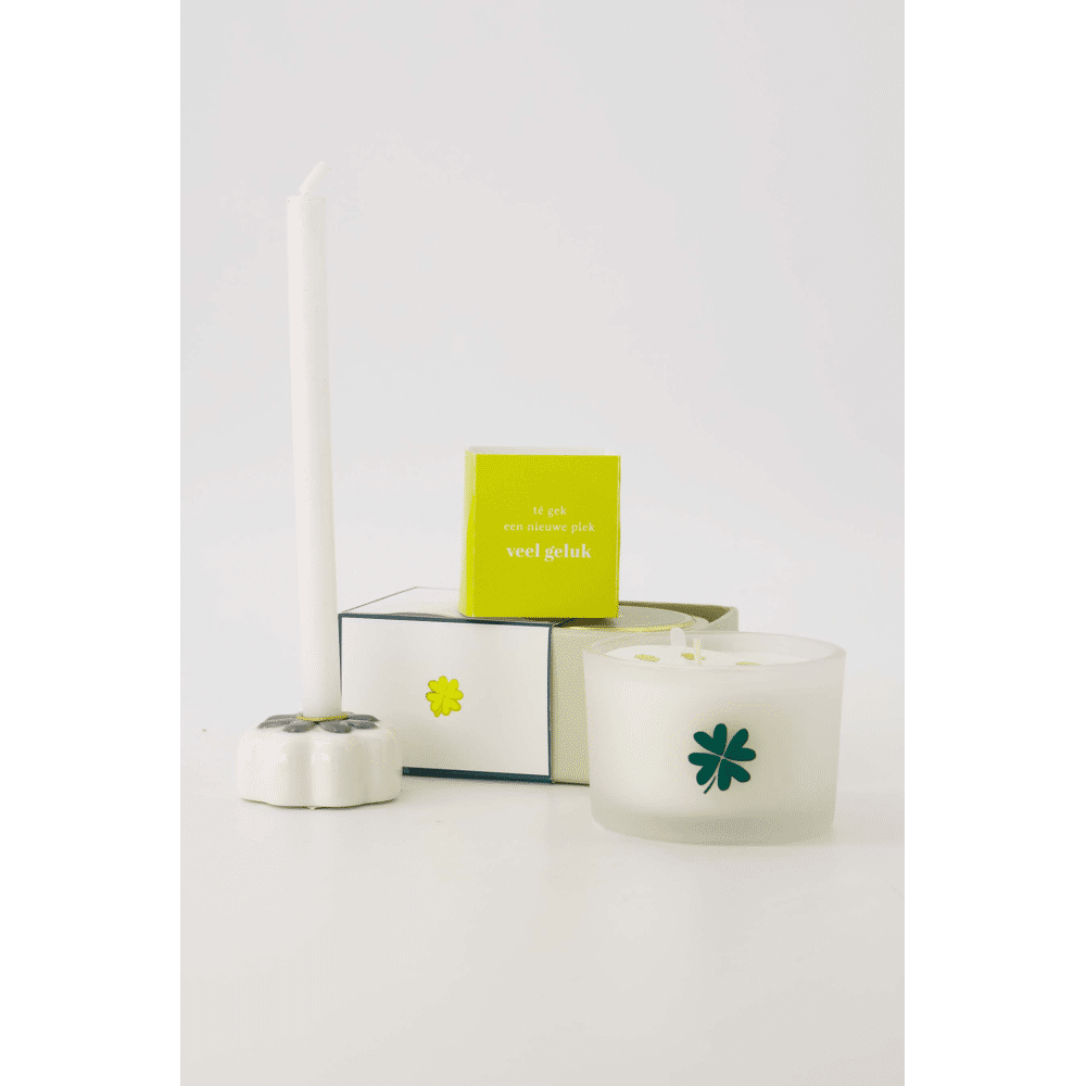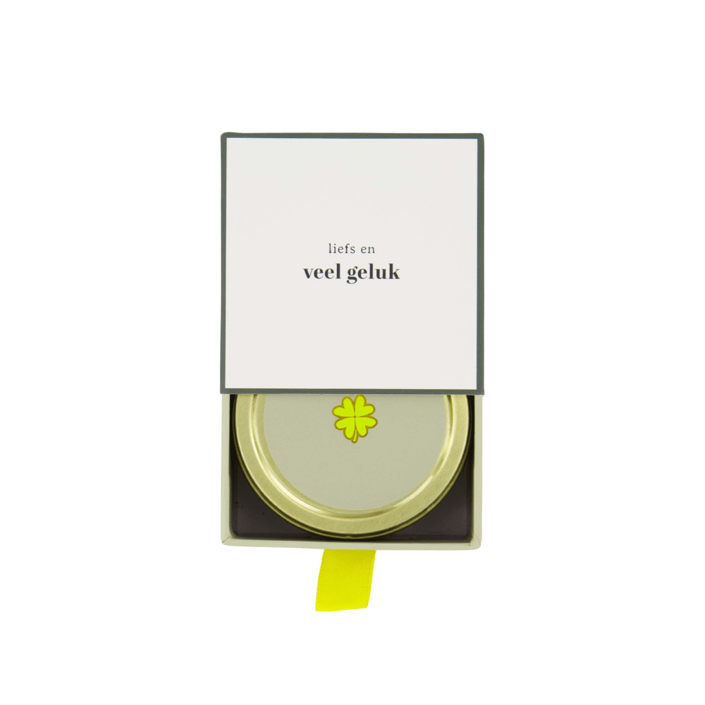 Geurkaars tinnen in schuifdoosje veel geluk klavertje wit/groen / Zusss