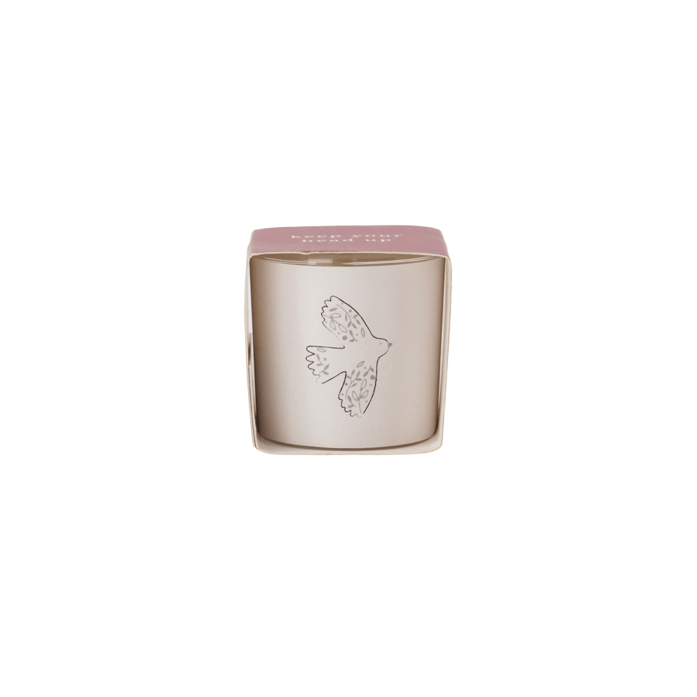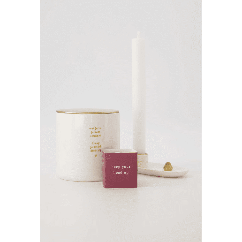 Het Zusss geurkaarsje met keep your head up is een subtiele eyecatcher voor in je woonkamer. Dit geurkaarsje brengt warmte en sfeer met een fijne geur, verpakt in een wit glaasje met een rood kartonnen wikkel. Het simpele ontwerp met vogelillustratie maakt het een stijlvol accessoire dat je elke dag een kleine reminder geeft. Het Zusss geurkaarsje past perfect bij andere woonaccessoires en zorgt voor een aangename geurbeleving in huis.