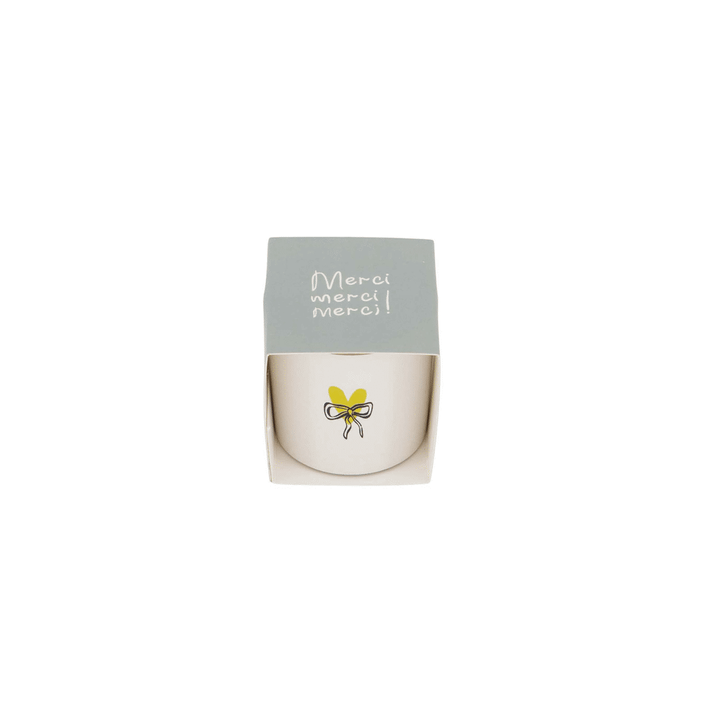 Dit Zusss geurkaarsje is perfect om je woonkamer een gezellige en persoonlijke touch te geven. Het geurkaarsje straalt rust uit met een subtiel design en een zachte kleurcombinatie van wit en grijsblauw. Het kleine kaarsje komt verpakt in een fijne wikkel met de tekst ‘Merci merci merci’, ideaal om dankbaarheid te tonen.
