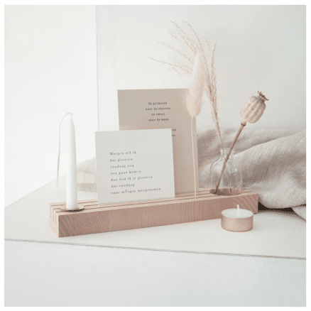 Bestel er een mooie messing theelichthouder bij of een lief kaartje!