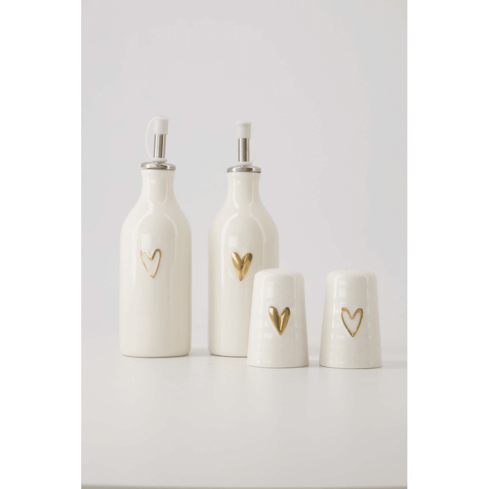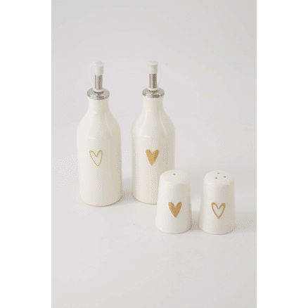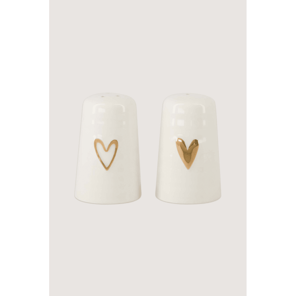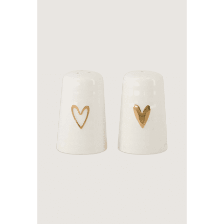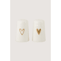 Peper en zout stel keramiek hartje wit/goud / Zusss