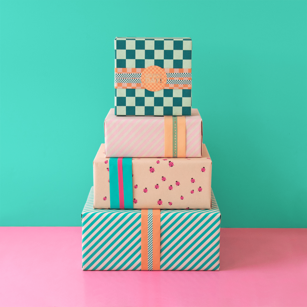 Rol inpakpapier Stripe Turquoise blue-salmon