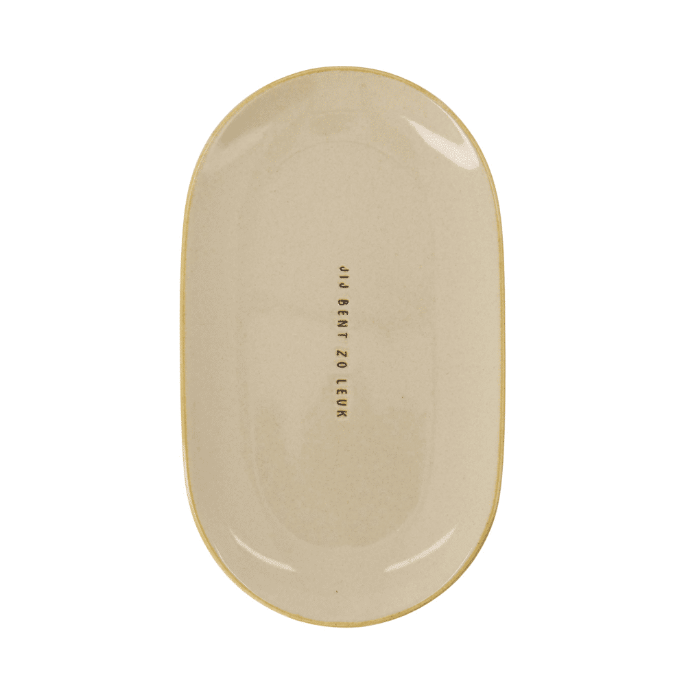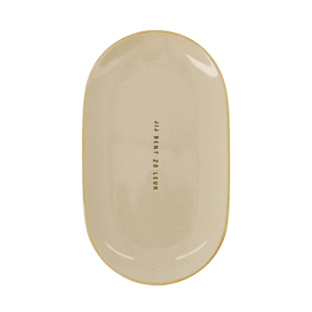 Deze zandkleurige schaal van Zusss met de tekst 'Jij bent zo leuk' maakt elke tafel net iets gezelliger. Meteen ook een fijn cadeautje om te geven. Perfect om hapjes op te serveren of als stijlvolle accessoire. Een eenvoudig design dat warmte en persoonlijkheid toevoegt aan jouw eettafel.