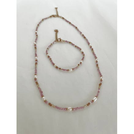 Set Armbandje + halsketting - Light pink / Stay Gold by Mme Bovary