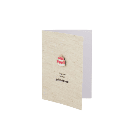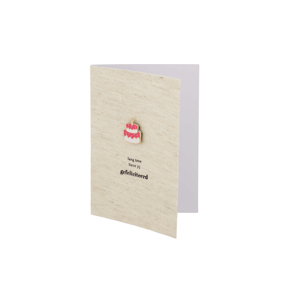 Deze Zusss wenskaart met taartjesmagneet geeft jouw felicitaties nét dat beetje extra. De wenskaart heeft een linnen look in beige met een schattige roze taartmagneet en de tekst "lang leve lieve jij gefeliciteerd".