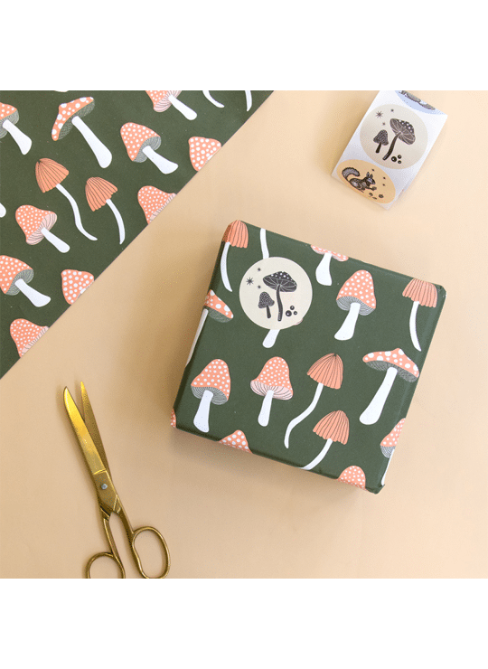 - Product: Rol inpakpapier Mushrooms Forest Green