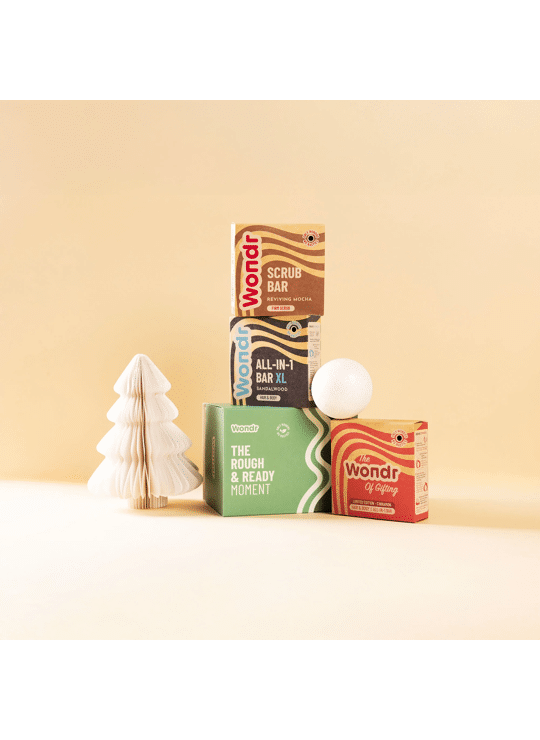 De Rough & Ready Moment GiftBox van Wondr is een limited edition cadeauset met krachtige, warme shower essentials voor hem én haar.